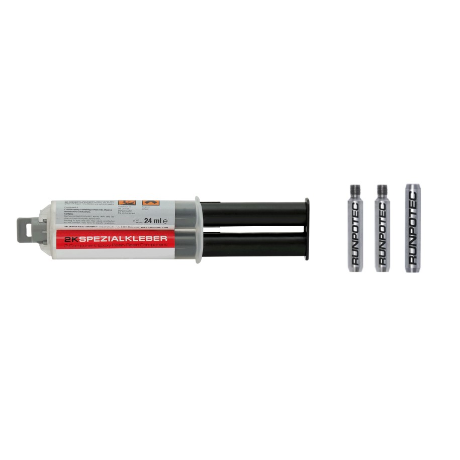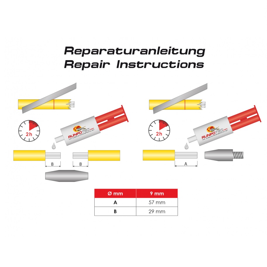 4-piece set for repairing Ø 9 mm fiberglass rods. 20% more adhesive strength compared to superglue. The 2-component special adhe
