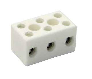 Porcelain terminal block. 3x4mm². 450V. 33x18x16mm. white