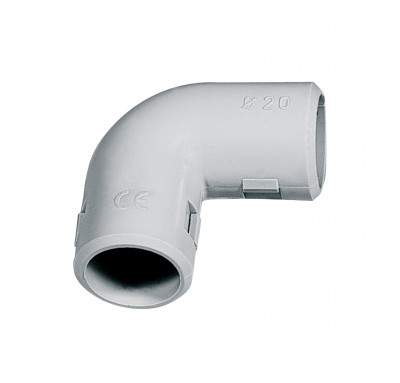 Böj 90°. Ø25mm. halogenfri. UV-beständig. IP40. grå