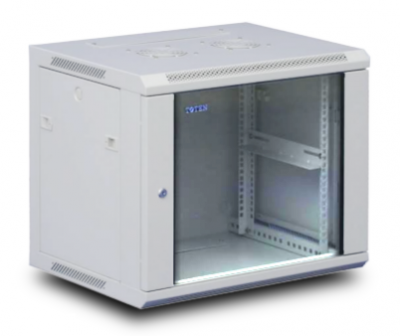 P2 19” seinäkaappi | 6U 600x600mm | lasiovi| kantavuus 60kg | harmaa