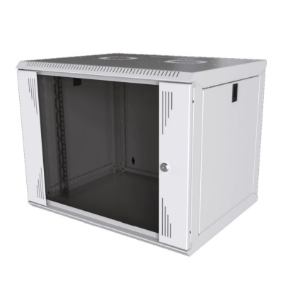 SW 19&quot; seinäkaappi | 6U 600x600mm | lasiovi | metallipaneeli | kantavuus 50kg | harmaa