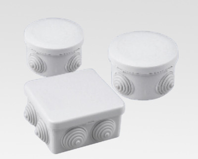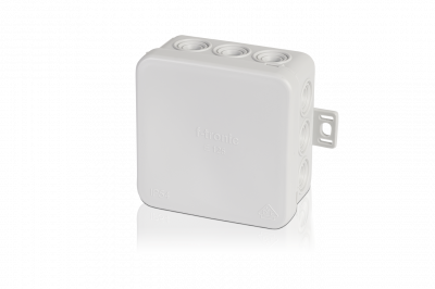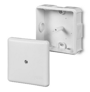 Kytkentärasia 85x85x40mm. painettava kansi. 12 tuloa. IP54. valkoinen