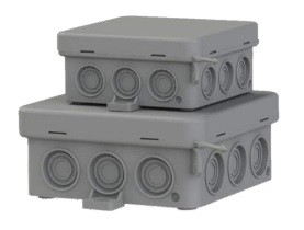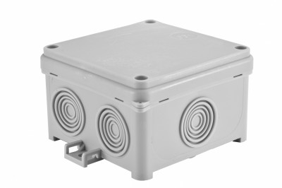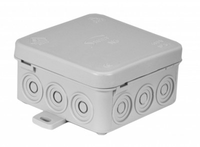 Liitäntärasia 80x80x40mm. työntökansi. 7 sisääntuloa. IP55. harmaa