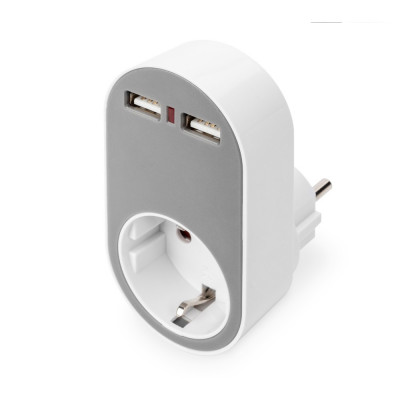 Virtalähde kahdella USB-portilla 250 V. 50 Hz. USB: 5 V. 2.1 A. valkoinen/harmaa